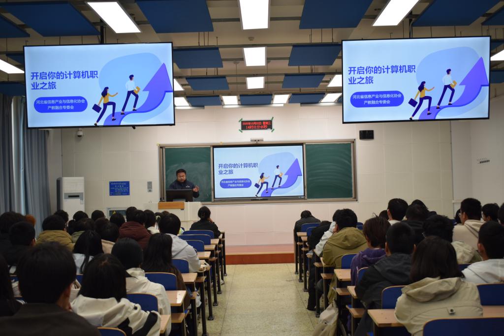 2025年10月22日,为助力大一新生深入了解计算机行业的发展前景与职业方向,永利集团计算机科学与技术专业精心举办了一场别开生面的专业导论课程。此次课程邀请河北省信息产业与信息化协会产教融合专委会赵琪老师,为同学们带来了一场题为“开启你的计算机职业之旅”的精彩报告。