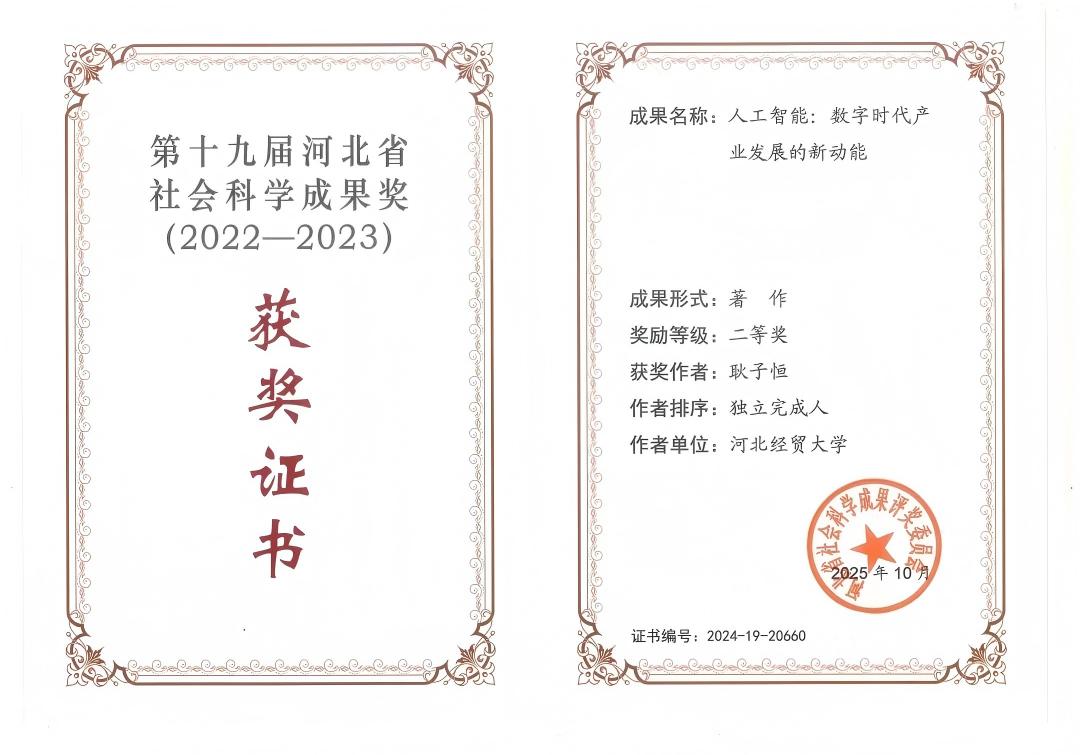 喜报丨公司耿子恒教授荣获第十九届河北省社会科学成果奖