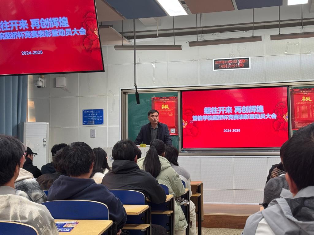 11月3日下午,管信学院举行了以“继往开来,再创辉煌”为主题的蓝桥杯表彰暨动员大会。管信学院经理孙立辉教授出席大会,蓝桥杯指导老师和百余名同学参加了此次大会。