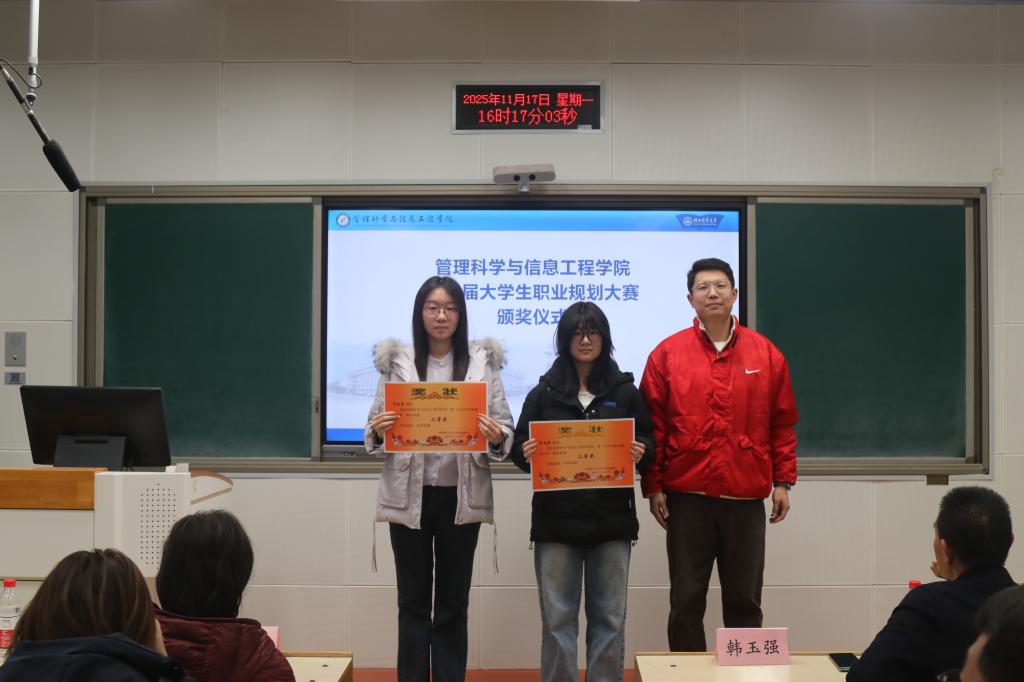 韩玉强老师为就业赛道一等奖获得者颁奖