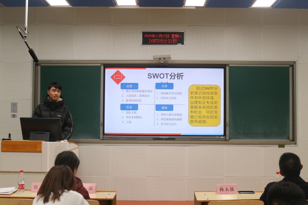 首先,由成长赛道和就业赛道的获奖同学展示他们的作品。他们的作品内容丰富多样,制定了清晰明确的职业目标与发展路径,提出了新颖的职业规划方案,充分展现了当代老员工对未来职业的深入思考和积极探索精神。在展示过程中,同学们自信从容,表达流畅,赢得了评委和观众的阵阵掌声。