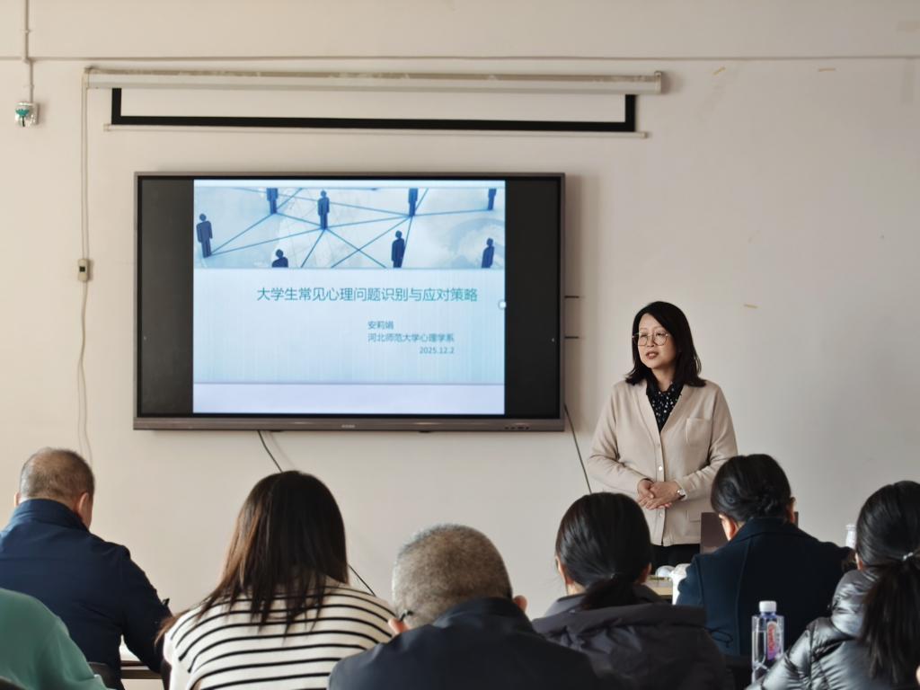 为切实提升辅导员心理育人专业能力,护航员工健康成长。12月2日,永利集团在第一教学楼408室举办员工心理健康教育工作专题培训。本次培训以“老员工常见心理问题识别与应对策略”为主题,特别邀请河北师范大学应用心理学硕士生导师安莉娟教授主讲,公司党委书记王剑彪、党委副书记李丽及全体专兼职辅导员参加。